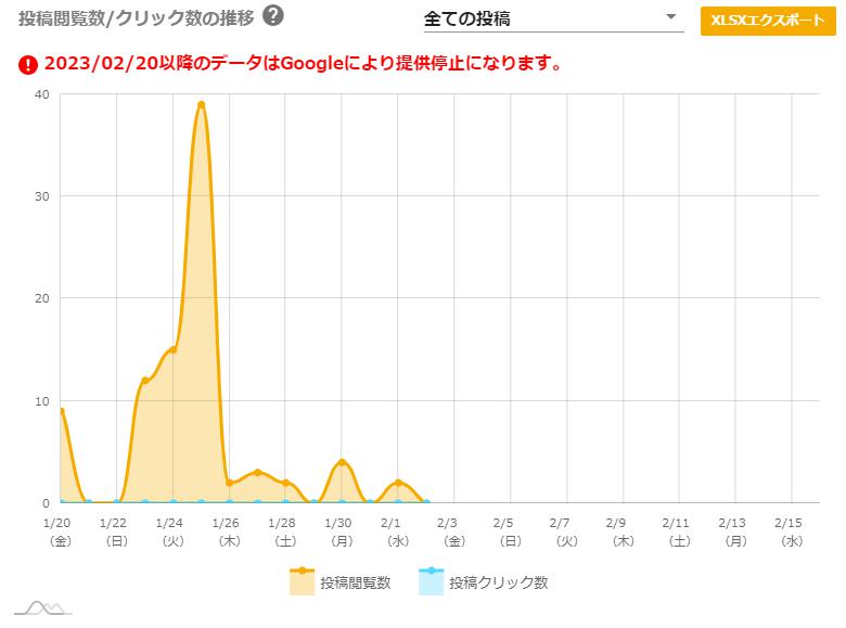 - 「検索数」「投稿閲覧数/クリック数の推移」「写真枚数・閲覧数」が、2023/02/20以降はGoogleにより提供停止になるため、注釈を追加しました。