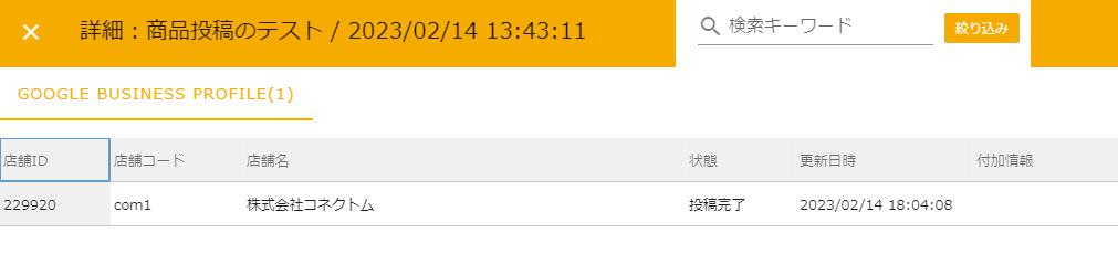 - 投稿一覧の左側にある「>」を押下すると、店舗毎の完了状況が確認できます。